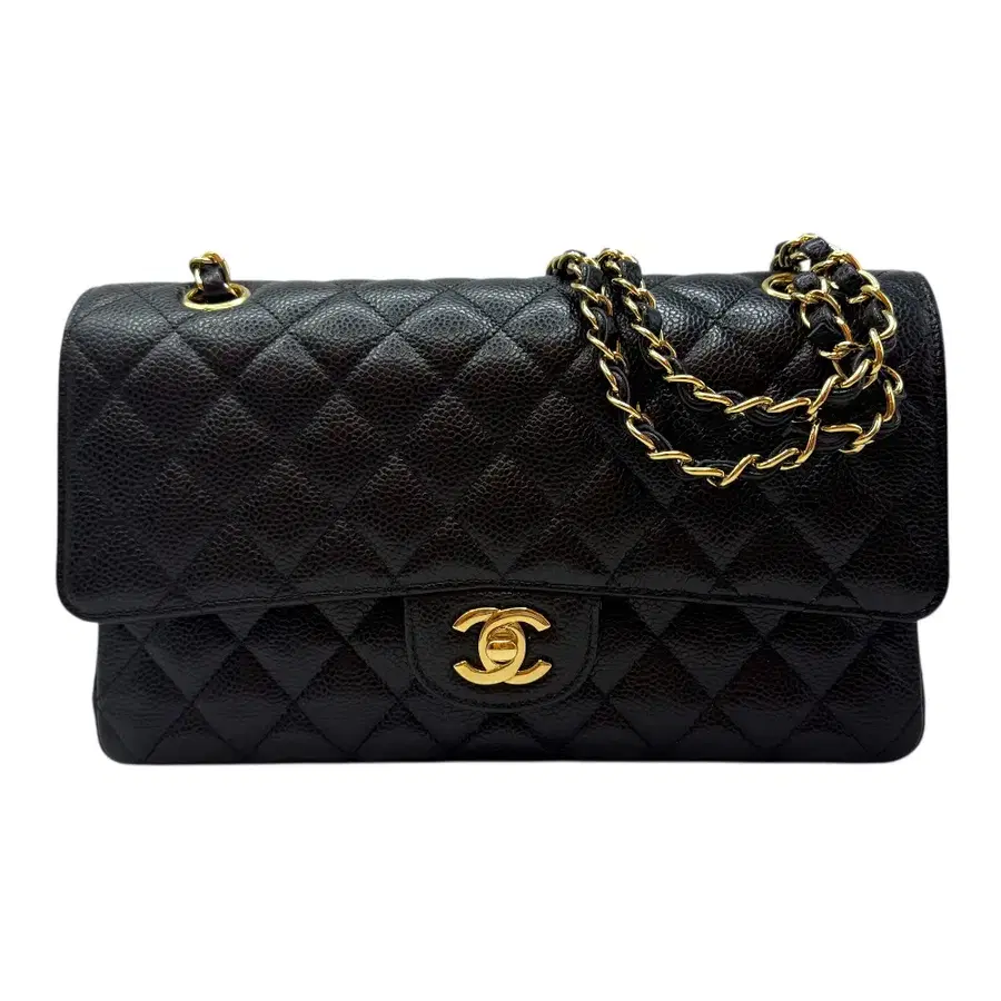 샤넬 캐비어 클래식 미디엄 금장 플랩 숄더백 A01112