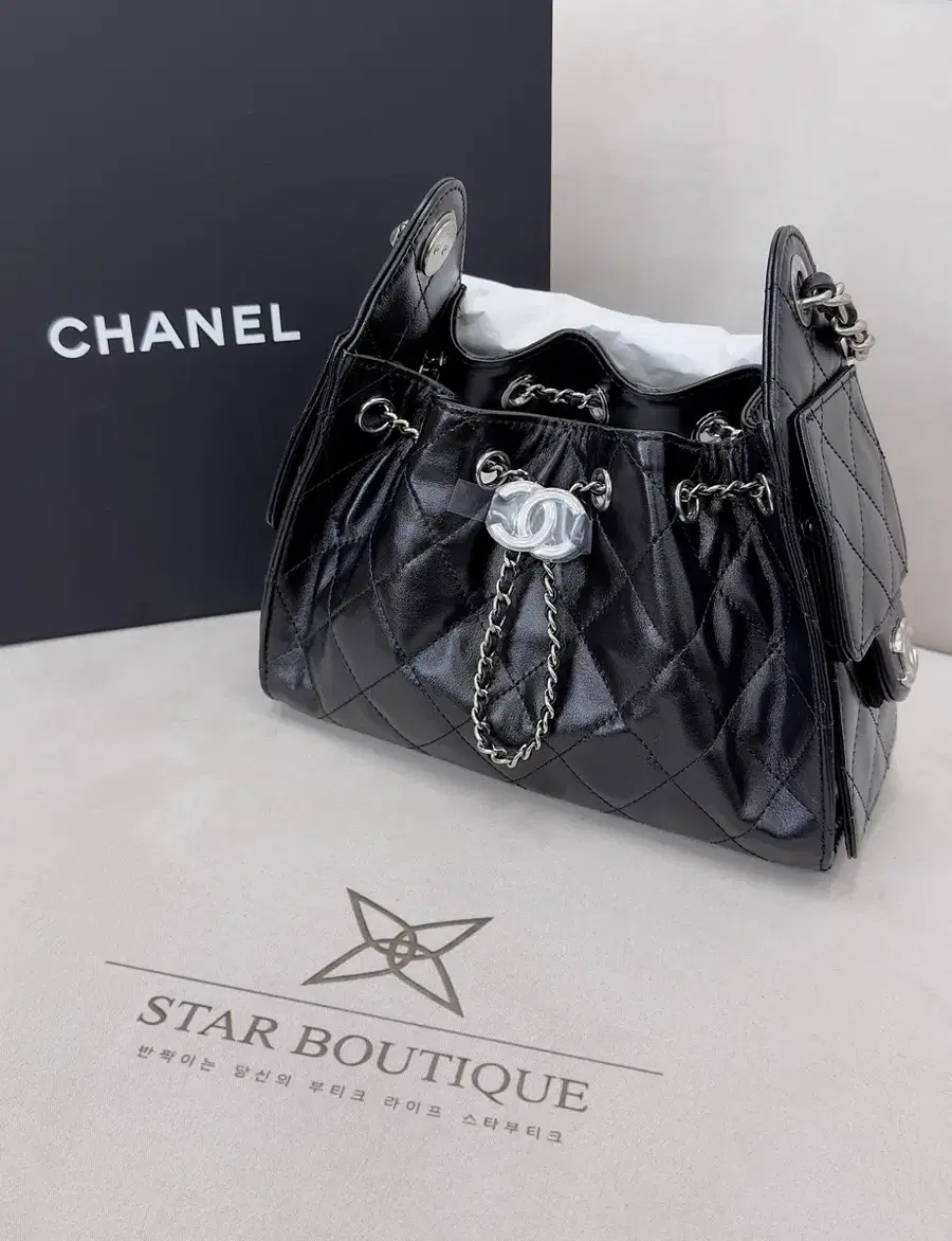 [국내백화점풀셋]26년최신 샤넬 샤이니 카프스킨 블랙 은장 숄더백