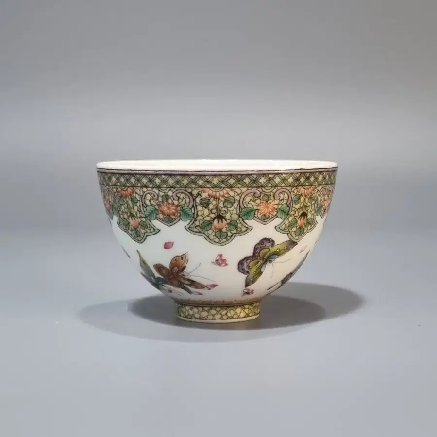 오래전부터 소장하고 있던 희소성있는 도자기 입니다 분채(粉彩) 유상 채색 나비문 완입니다. 고가에 거래되는 기물은 작고 잘 만들어진 기물이 많습니다 청말기 고방으로 사료됩니다 나비 8마리(八蝶)가 유려하게 배치되어 있으며, 꽃잎이 흩날리는 구도는 복(福)·길상·흥성을 상징하는 전통 길상 문양 구성입니다. 유약 위에 유상 안료를 세필묘사한 분채법랑으로, 일부 도안에는 세월감에 자연스러운 빙결(氷裂)이 확인됩니다. 이는 긴 세월이 축적되며 형성되는 현상으로 쉬 보기 어려운 노화 흔입니다. 태토와 유약 상태 안정적이며, 구연부·굽 비례 또한 자연스러우며 얘술성,희소가치,세월감 모두 완벽. 실물 사진 올리고 있습니다 격이 있는 멋진 도자기 살 땐 많이 비쌌지만 좋은 가격에 분양합니다.