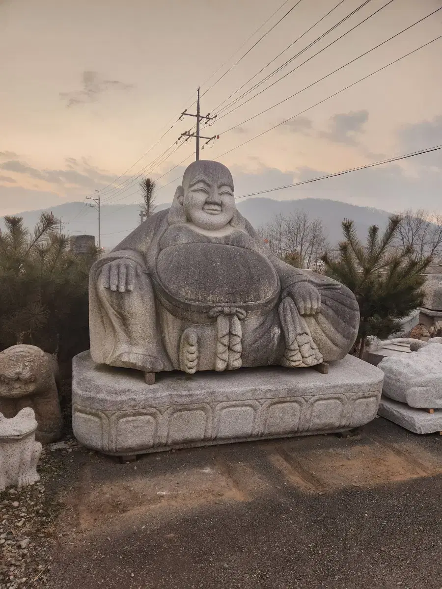 돌로 만들어진 대형 포대화상입니다. 국산 돌로 만들어져서 더욱 의미있고, 섬세한 조각이 돋보입니다. 정원에 두면 웅장하고 멋있을 것 같습니다. 문의 없으시면 바로 안전결제해주시면 됩니다! 국산 대형 포대화상 높이2200 길이2500 무게약 12톤 직거래 택배 착불입니다 천안시 동남구 병천면 매봉로429 남권멀티샵