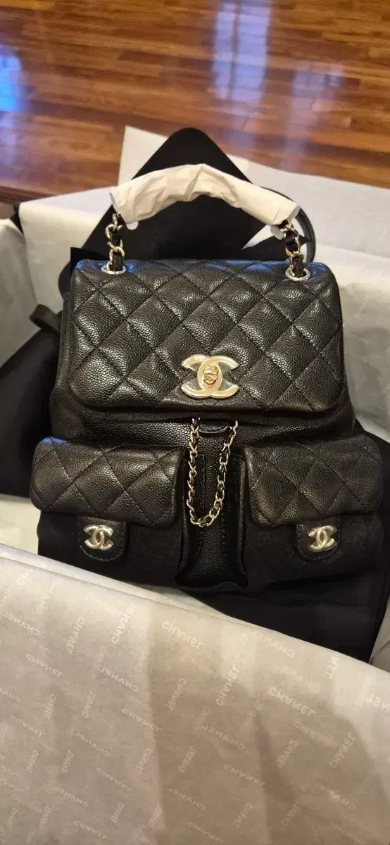 샤넬 듀마백팩 미듐사이즈 블랙 캐비어 투포켓