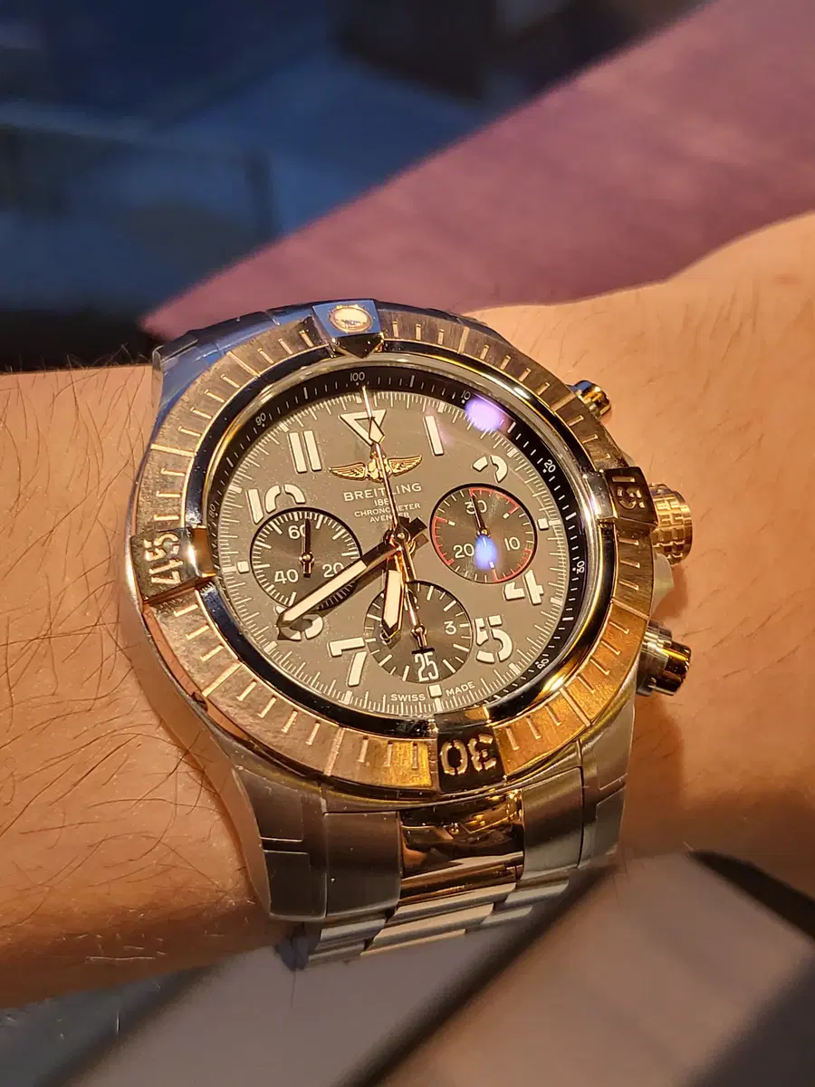UB01821A1B1U1 어벤져 B01 크로노그래프 45 250점 한정 제품입니다 22년 3월에 구매한 제품이고, 사용을 자주 안해 상태가 좋습니다. 개인사정상 급하게 급매로 처분하려합니다 가격은 1100만원입니다.