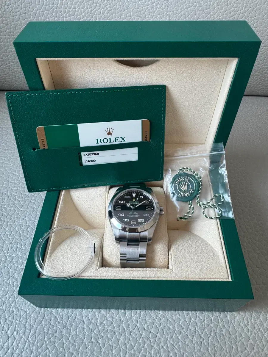 안녕하세요. 롤렉스 에어킹 40MM 한점 판매하거나 롤렉스랑 교환합니다 상태는 사진 보시다시피 자연스러운 사용감 존재합니다 예민하신분은 따로 폴리싱하셔서 새것처럼 사용하시면 되겠습니다 구성품은 박스랑 시계 보증서 메달 등등 책자만 빼고 다 있습니다 사설업체 감정서 가지고 있는데 원하시면 같이 드리겠습니다 코는 풀코 입니다 약속날자 잡고 펑방지금 10만원 받고 거래 진행하겠습니다 원하시면 감정받으러 동행가능합니다