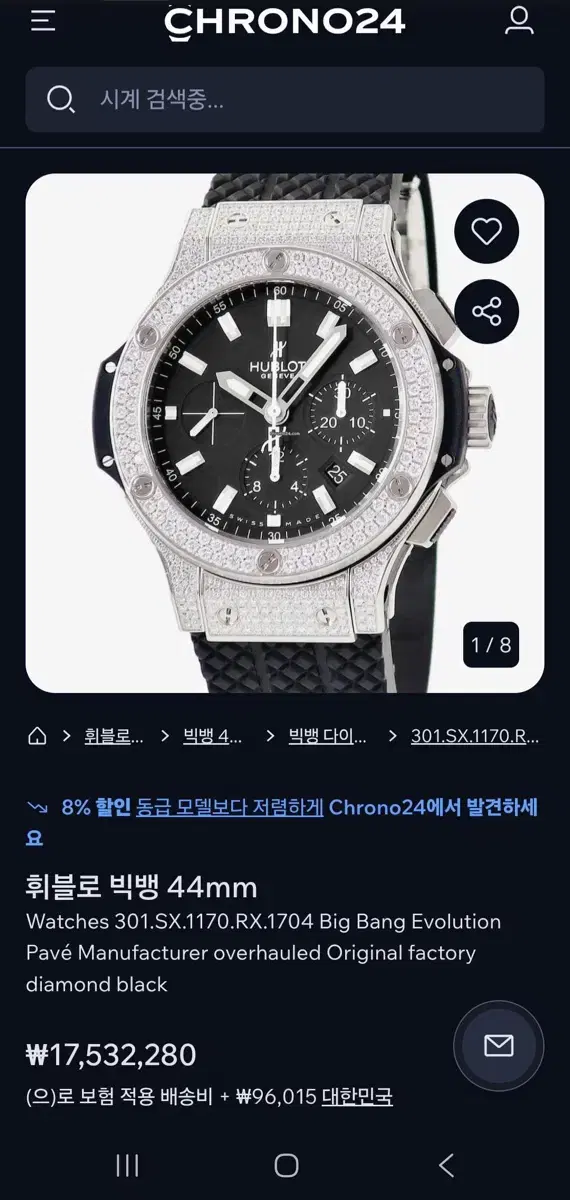 위블로 빅뱅 44 크로노 풀다이아 급매
