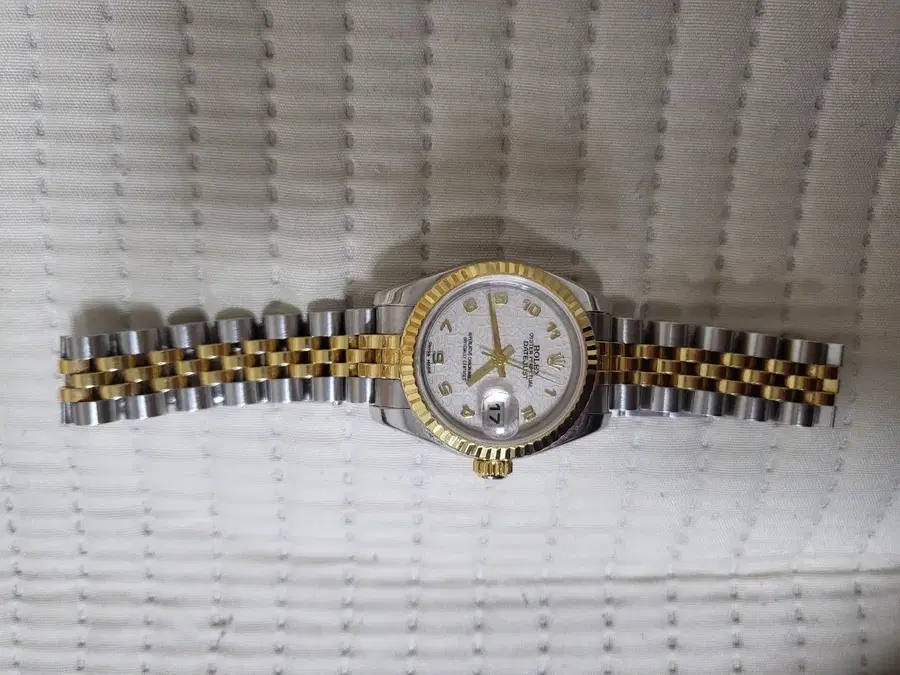 롤렉스 여성 데이저스트 콤비 시계 179173 모델입니다. 콤비 색상이라 고급스럽고 예뻐요. 평소에 아껴 착용해서 상태 좋습니다. 폴리싱 오버홀 전부 다 한 상태에서 산거에요 감정서 있습니다 .