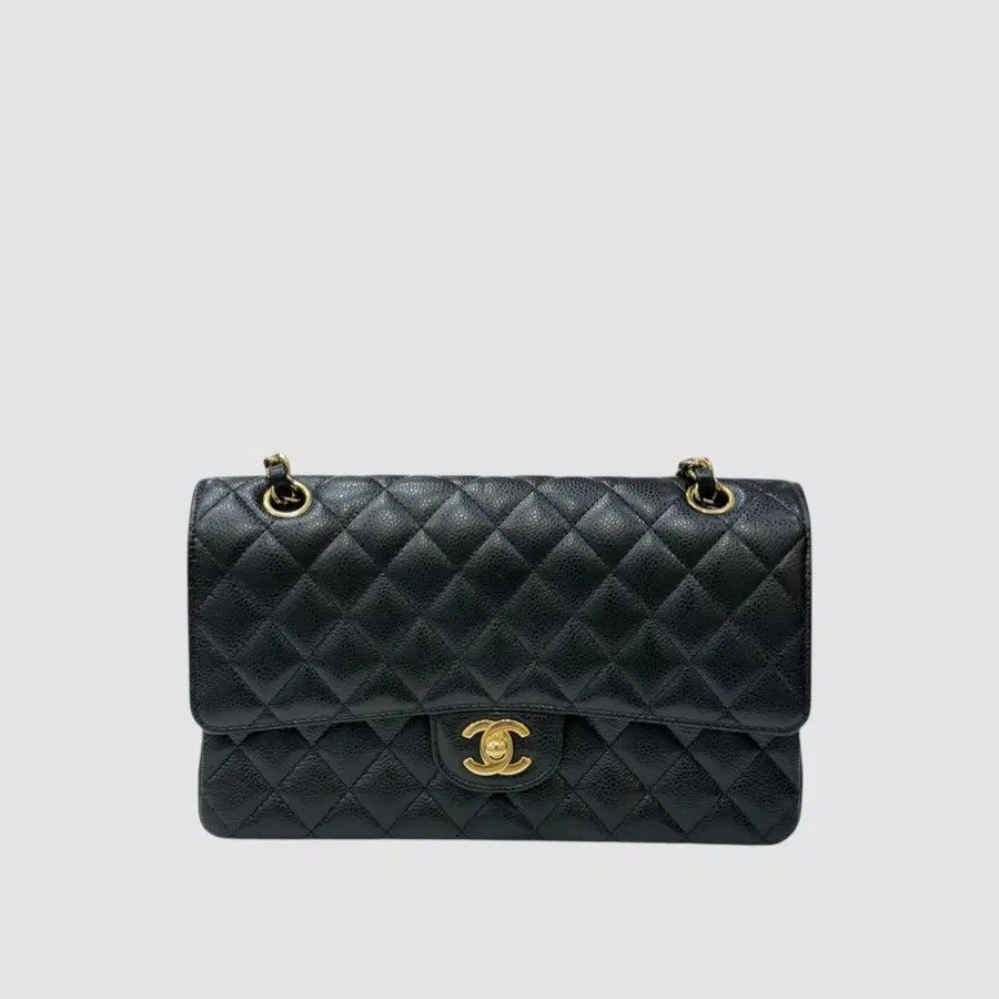 샤넬 클래식 플랩백 미디움 캐비어 블랙 금장 21번대