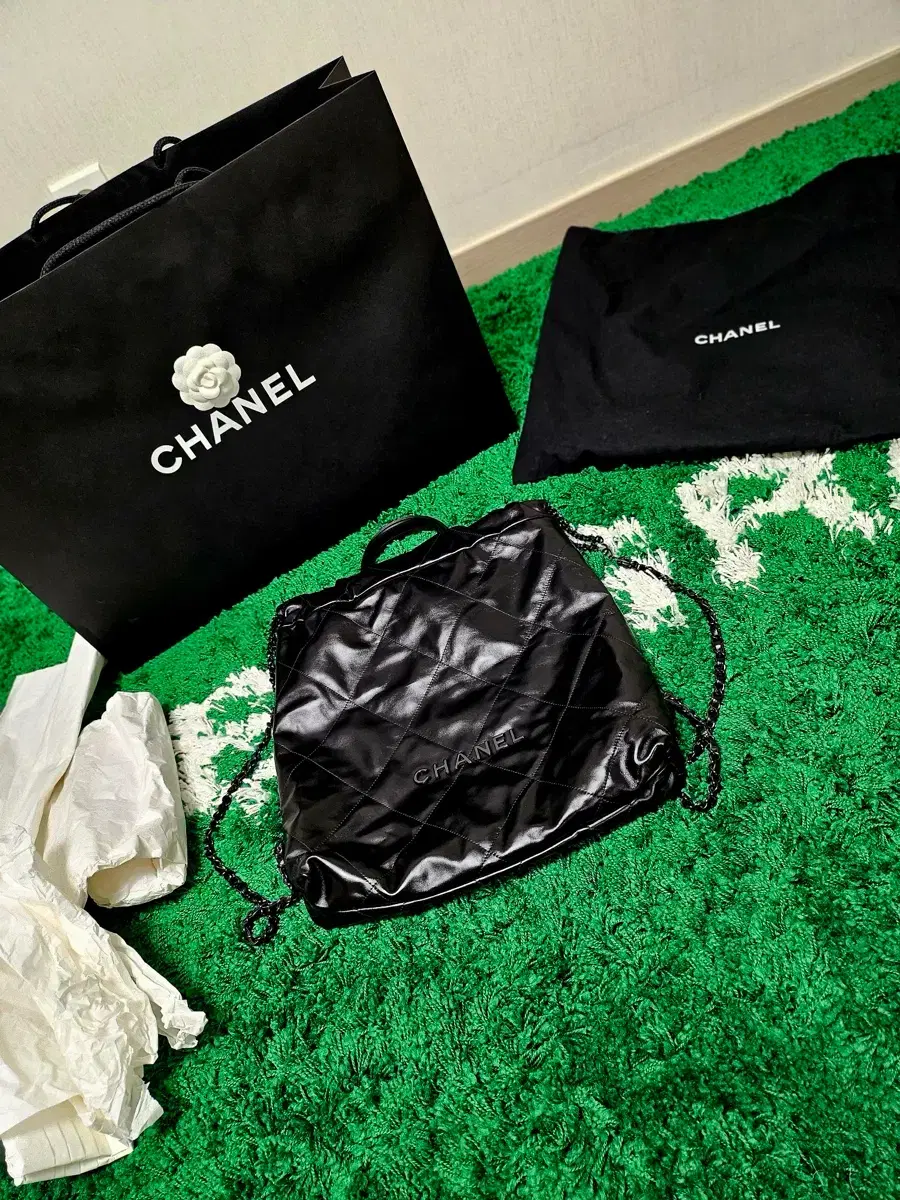 블랙 색상의 샤넬 22백 미디움 쏘블랙입니다. 쇼핑백, 더스트백 등 구매할 때 받은 구성품 그대로 드립니다. 은은한 광택이 고급스럽고, 넉넉한 수납 공간이 특징입니다 쏘블랙은 보기도 구하기도 힘들어요 특별한날 가끔들어서 컨디션 엄청좋습니다 구매하실분만 쳇 주세요 에르메스 가든파티49 교환생각있어요